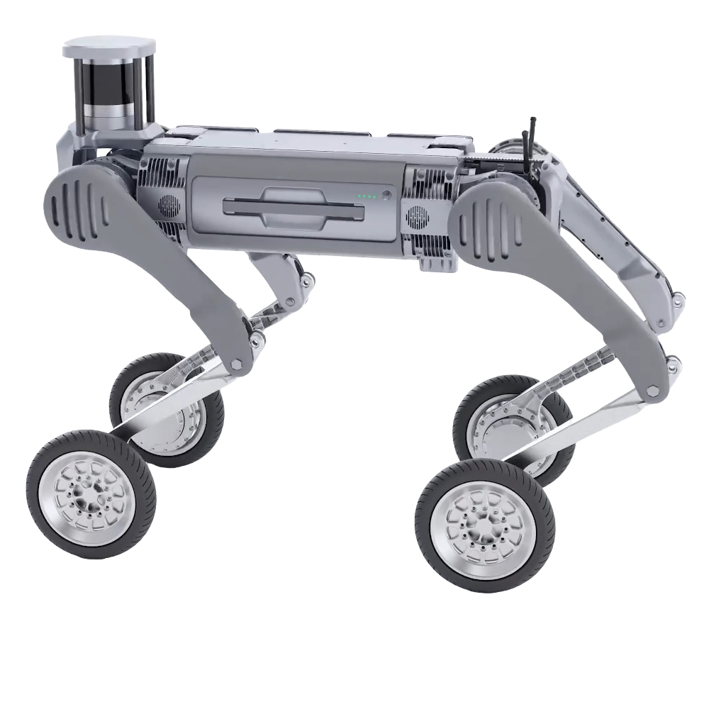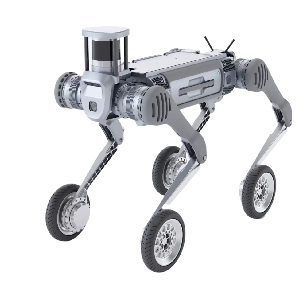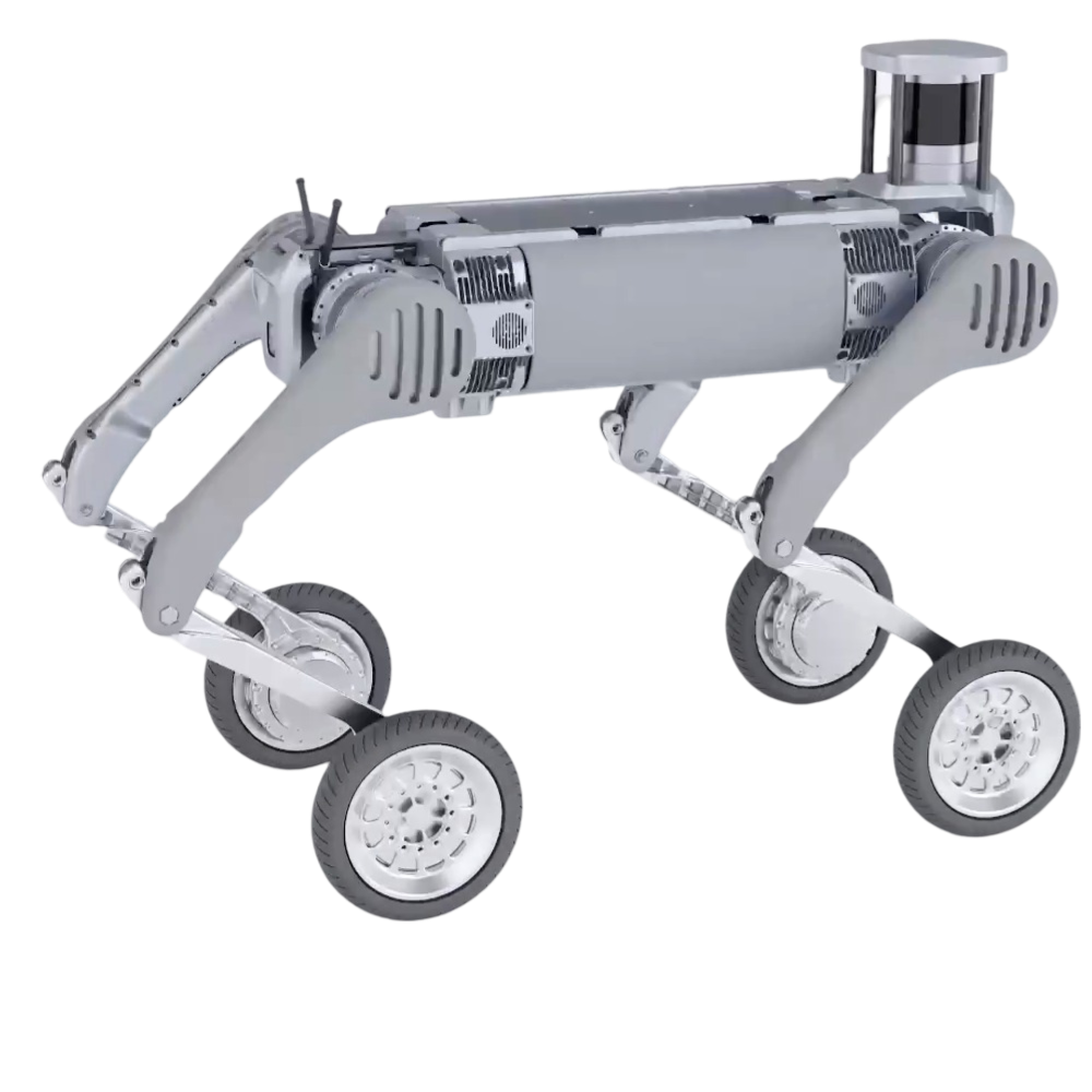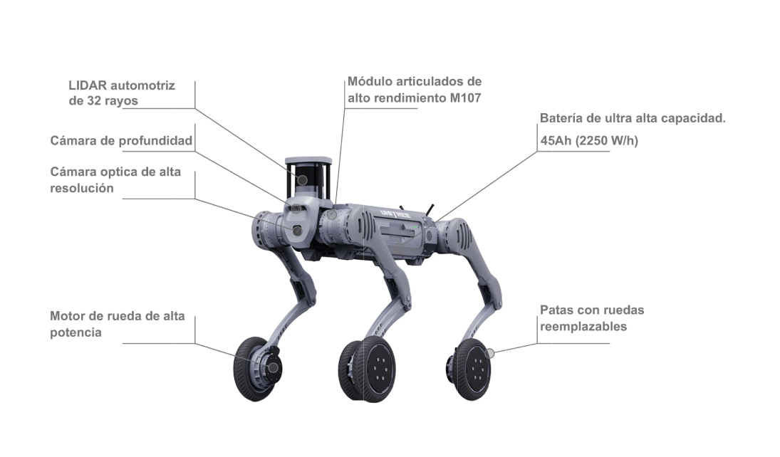 El robot cuadrúpedo B2-W redefine la movilidad con su diseño híbrido de patas y ruedas, permitiéndole adaptarse a cualquier terreno y superar obstáculos con facilidad. Gracias a su avanzado sistema de control y percepción, mantiene el equilibrio en todo momento, logrando movimientos dinámicos como: